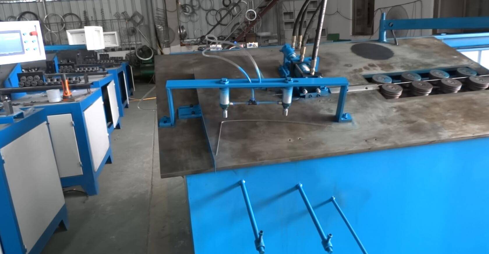 進線工位及折彎頭之間的距離是可調節的,因此,它能夠處理在線材直徑較小的情況下的重要卷繞工序,也能完成需大型空間的折彎工作。